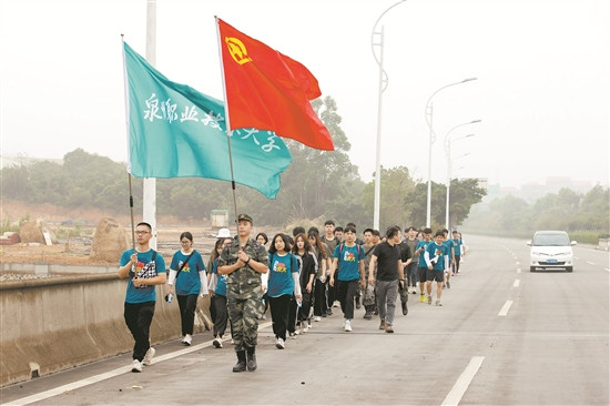 师生徒步丈量红色旅程 5月4日凌晨5:04,本应是静谧的假期清晨,但泉州职业技术大学晋江校区却格外的热闹。100名师生早早起床、整装待发,他们将徒步20公里前往晋江新塘街道梧林传统村落,用脚步丈量城市红...