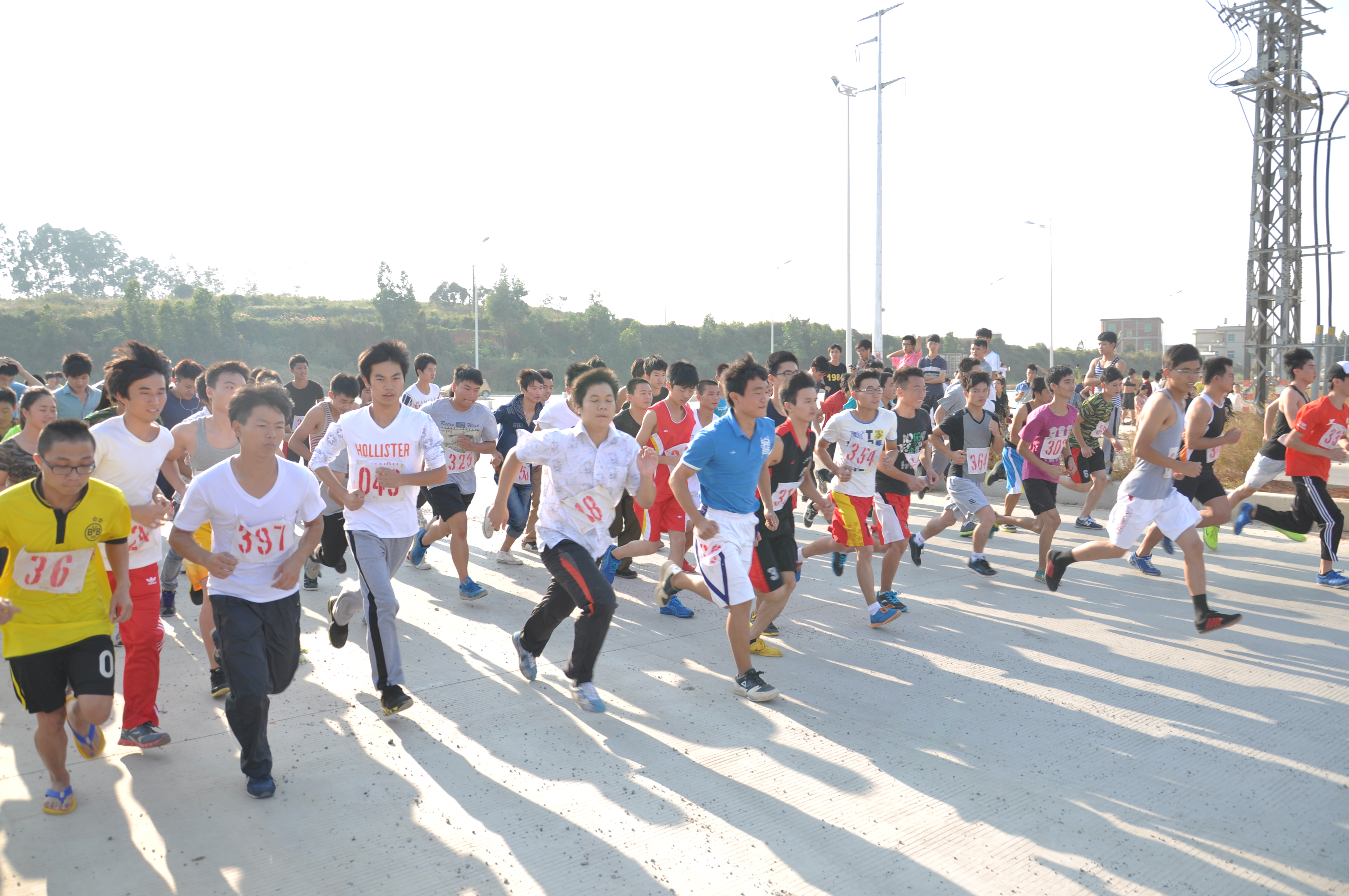 浩浩荡荡的马拉松测试赛选手 跑步中的参赛者们形成一道亮丽的风景线 立志跑100次马拉松的徐远山也参与此次的测试赛 刚跑完全程的同学汗如...