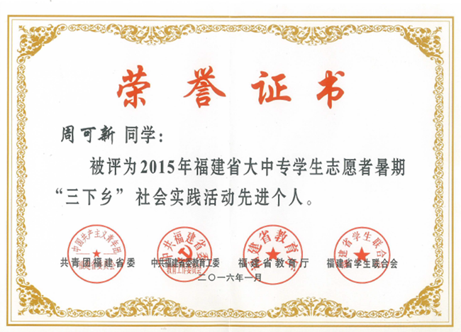 • 我校在2015年福建省大中专学生暑期“三下乡”社会实践评选活动中获优秀
