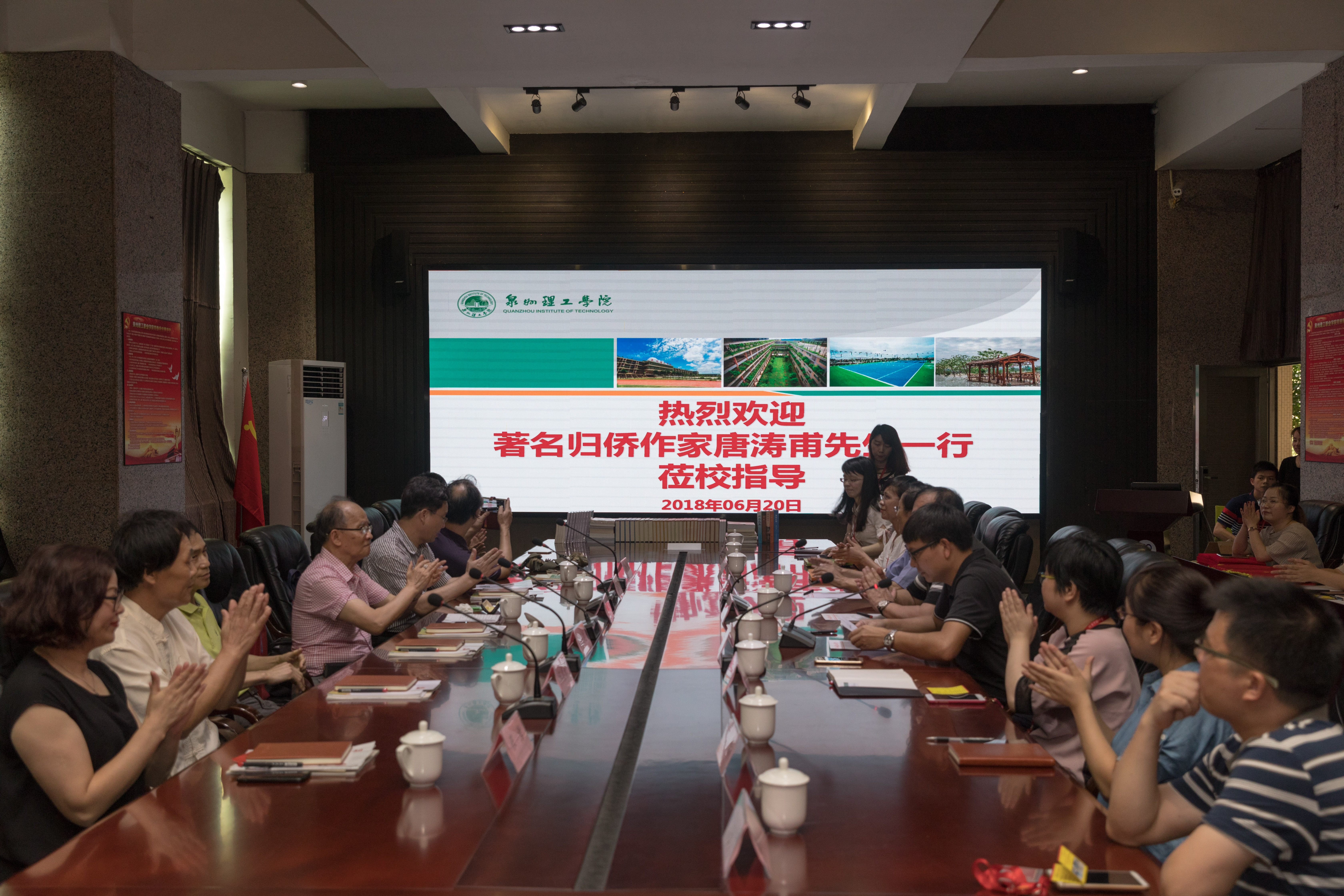 6月20日下午, 著名归侨作家、福建省作家协会、福建省法学学会会员唐涛甫先生带着他创作的七部书籍来到泉州理工学院,与师生畅谈创作心得。晋江电台台长尤振阳、福建省作家协会会员庄马炮、中国书法协会理事汪真...