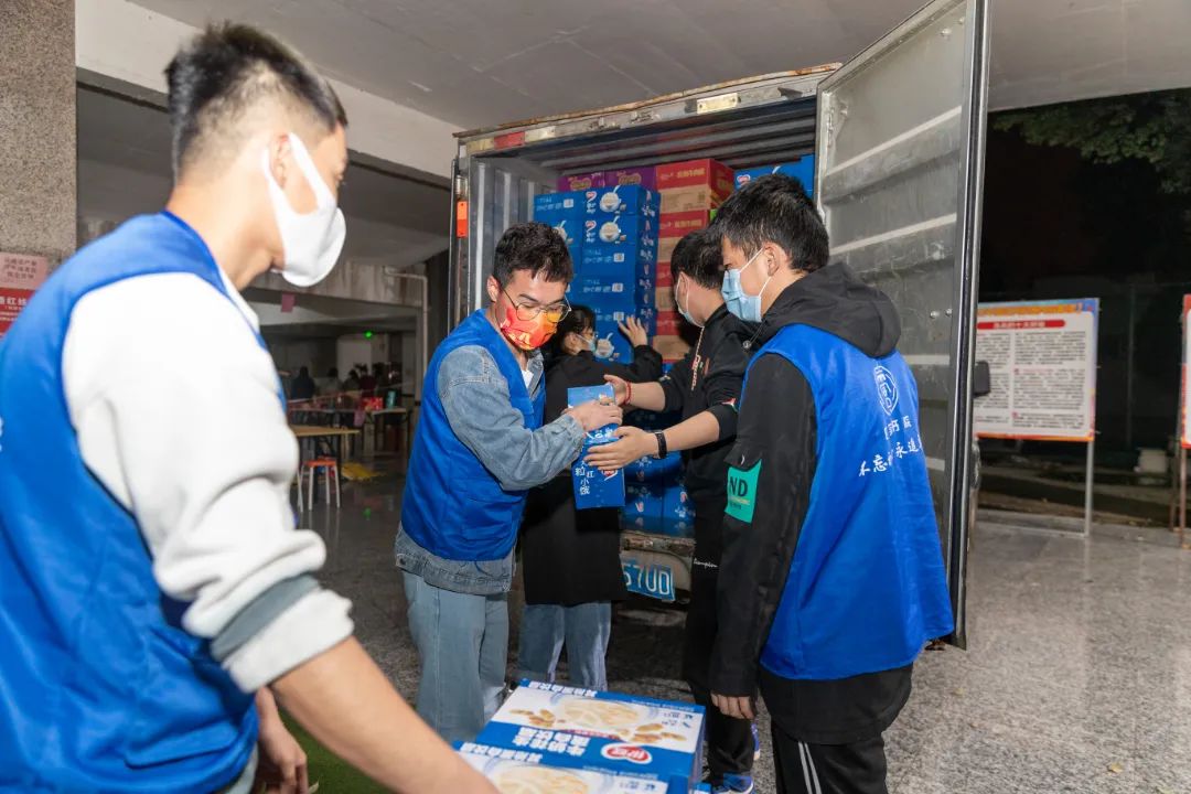 接收、分类、装箱,再一件件抬上电瓶车运到各个书院分发……3月21日,校领导、教职工、教工家属纷纷加入抗疫教职工志愿服务队中,共出动近百人次,为全校学生提供送餐服务,全力保障学生们的用餐。