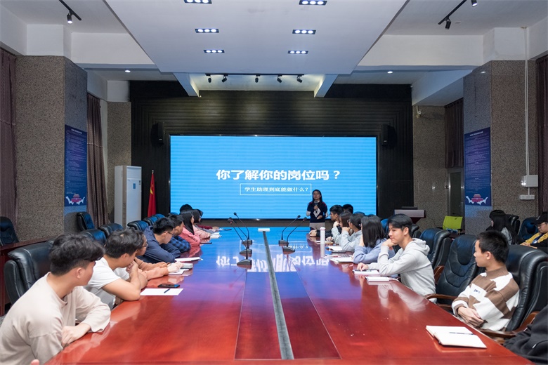 11月13日晚,学工处副处长罗敏首先就学生助理在工作过程中应具备的礼仪礼节及岗位基本知识做了介绍。她从“礼仪是一个人内外兼修的表现、礼仪代表一个人的学识和修养”切入,介绍了职场中必须具备的职业形象、社交礼仪、商务礼仪等知识;讲到岗位认知,罗老师抛出“你了解你的岗位吗?学生助理到底能做什么?”两个话题,引发学生助理思考并现场交流互通,她要求学生助理要做到角色定位、思想到位、状态在位、学习整位4个“位”。随后,党务工作部副部长黄镇红结合多年工作经历,通过分享职场工作案例,介绍职场中应具备团队意识,要有学习能力,要善于沟通,才能提高工作效率,强调学生助理要明确“要什么、学什么、会什么、做什么”才能在这个平台上锻炼成长。