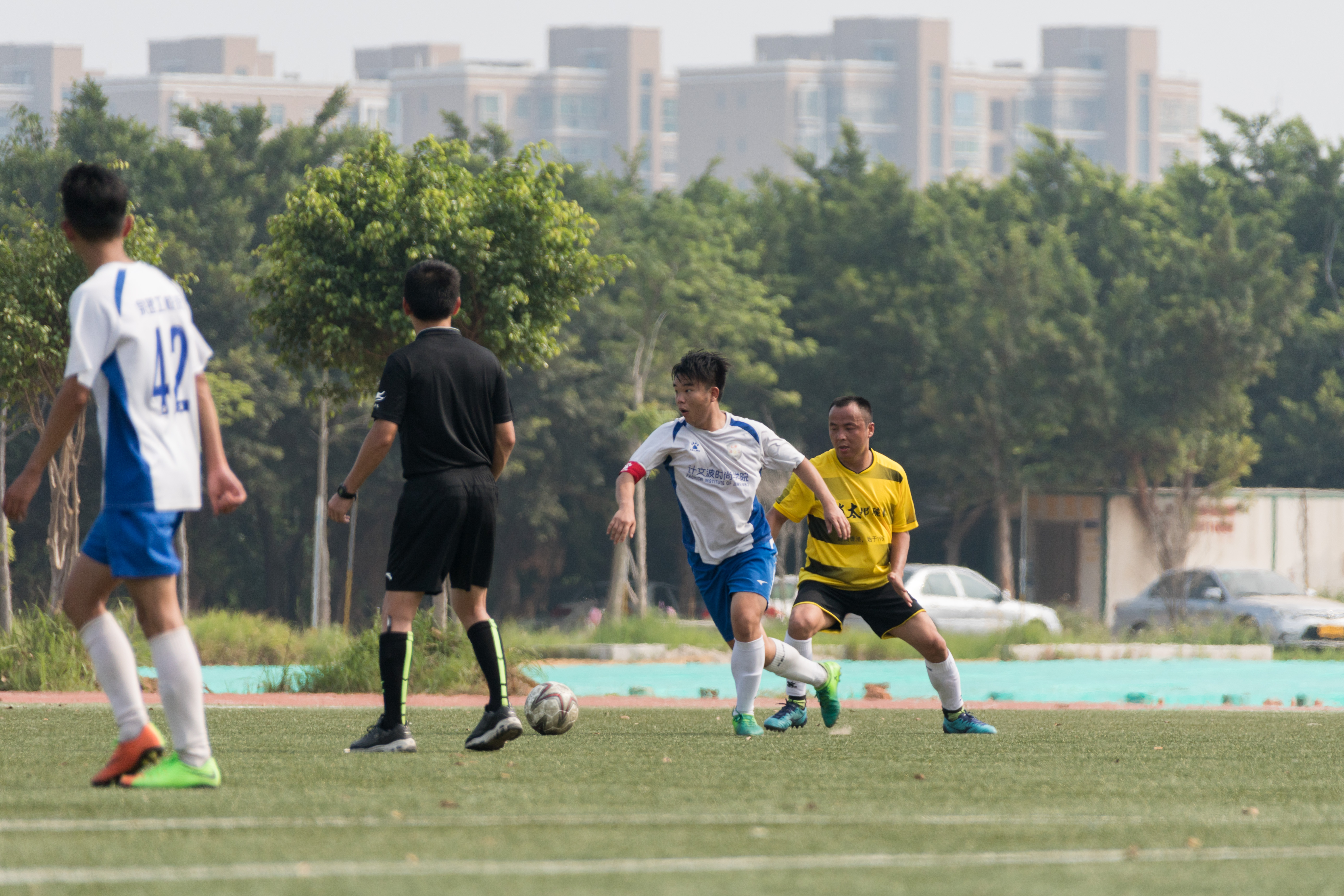 由于比分落后,下半场晨曦足球队一直在寻找扳平比分的机会。但泉州理工学院校队丝毫不敢怠慢,严阵以待,加上闷热的天气让晨曦的体能早早的消失殆尽。