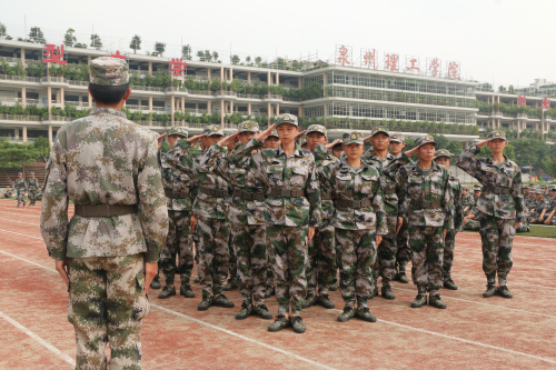 军训会操由泉州海洋学院海翔军训团团长贺充同志指挥,每个班级的方队依次通过主席台,向校领导、来宾汇报训练成果,表演项目有稍息、跨立、立正、停止间转法、军姿军训、蹲下起立、坐下起立、齐步行进与立定、跑步行进与立定、敬礼与礼毕等,同学们的良好表现赢得了现场领导、老师和同学们的阵阵掌声。