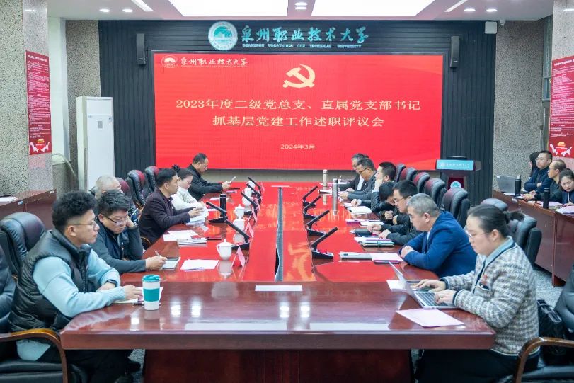 述职评议会采取现场述职、点评和民主测评方式进行。会上,19位二级党组织书记全员现场述职,围绕基层党建重点任务汇报履职措施和主要成效,分析存在问题和原因,围绕学校中心工作,汇报2024年工作计划。与会校领导逐一点评,肯定成绩亮点,指出短板弱项,对进一步做好基层党建工作提出要求。过去一年,全校各基层党组织坚持以习近平新时代中国特色社会主义思想为指导,主题教育开展扎实,基层党建工作更加扎实,特色亮点更加凸显,在课程思政、队伍建设、产教融合、学生成长成才、社会服务等方面成效显著,获批教育部首批国家级市域产教联合体、工信部根技术联合创新人才培养产教融合基地,入选省高校巡礼典型案例、第六届全国民办高校党建和思想政治工作优秀成果、全国职业院校党委书记论坛优秀案例等;入选省级产业学院试点、省级乡村振兴直播产业基地、市级产教融合专业群等,省“双带头人”教师党支部书记工作室通过验收,3个支部推荐申报全国党建样板支部;获省职业教育专业带头人、省优秀教育工作者、市优秀思想政治工作者、市名师工匠等荣誉。基层党组织政治功能和组织功能不断增强,有力引领和保障学校改革发展。
