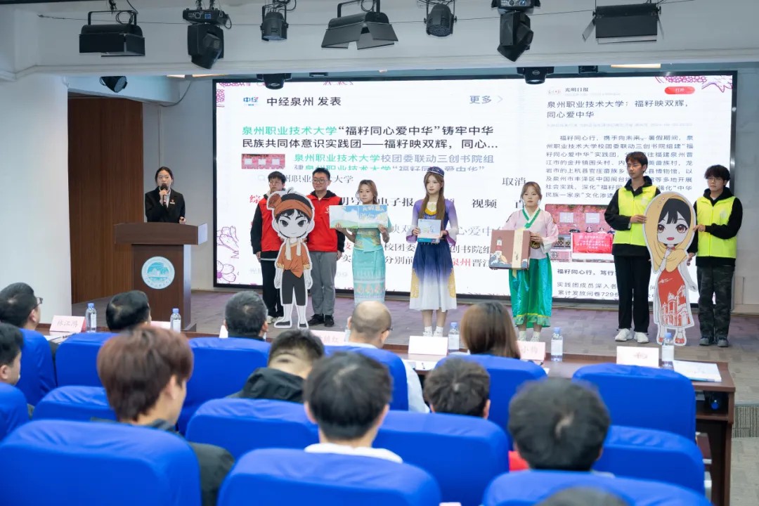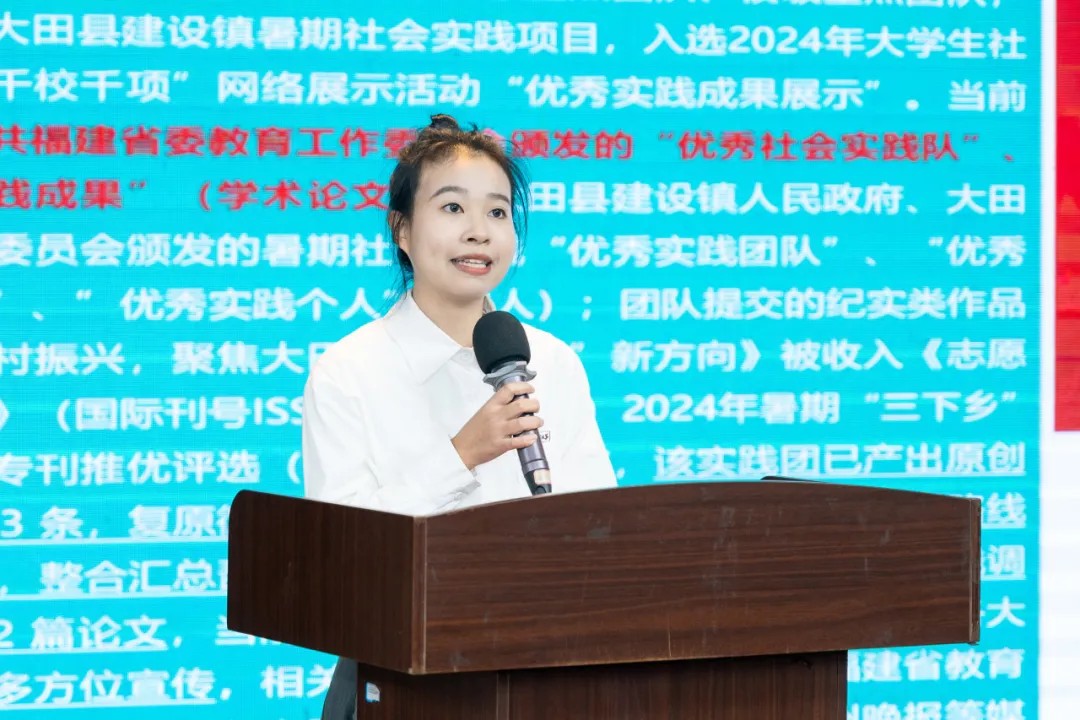 12支校级优秀实践团队依次上台,结合各自专业特色与实践经历分享了丰富多彩的社会实践成果,展示了泉大师生的时代担当与蓬勃朝气。