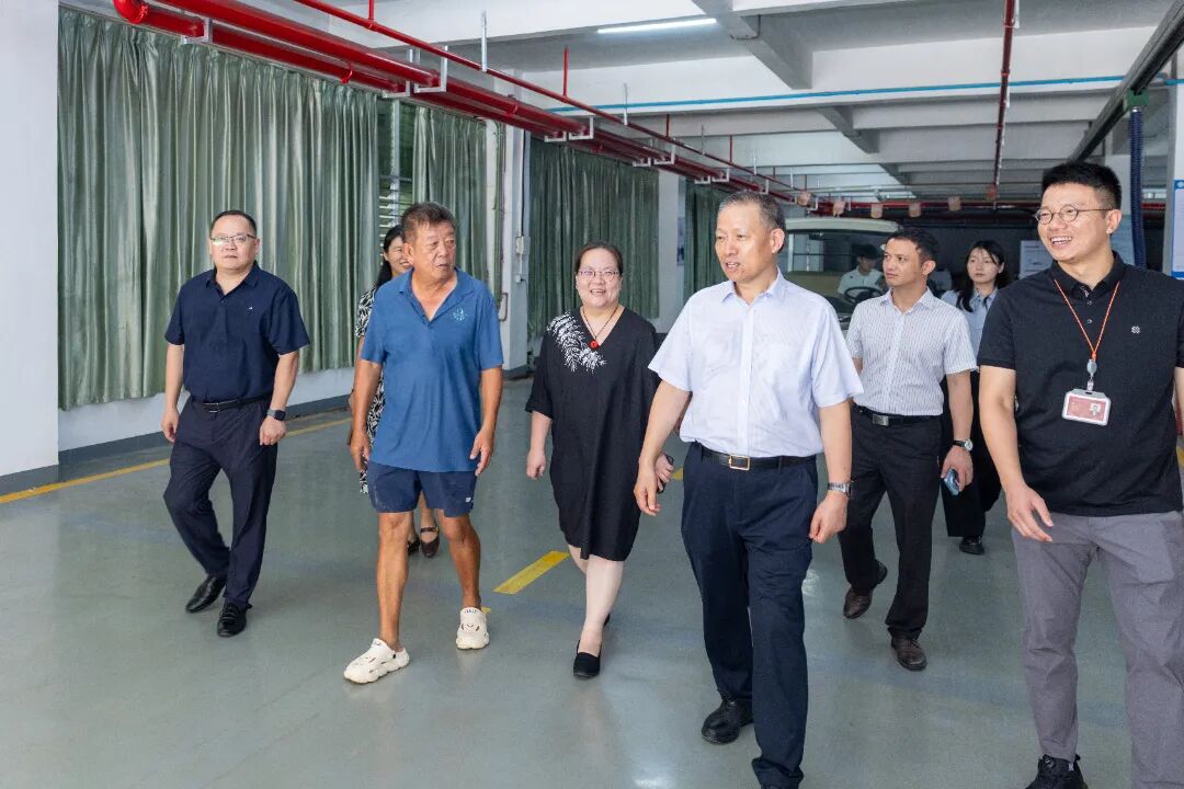吴立春一行先后参观了我校生态校园沙盘、校史馆、艺术设计展厅、电商直播基地、数智产教融合展厅及行云新能源产业学院等教学科研场所。每到一处,校领导充分围绕学校发展沿革、校企协同机制、专业群建设成果、数智培养及产业实践等方面作系统介绍。途中,吴立春与我校创办人/董事长吴金营亲切交流,对吴金营董事长质朴务实、躬耕职教的精神深表钦佩。