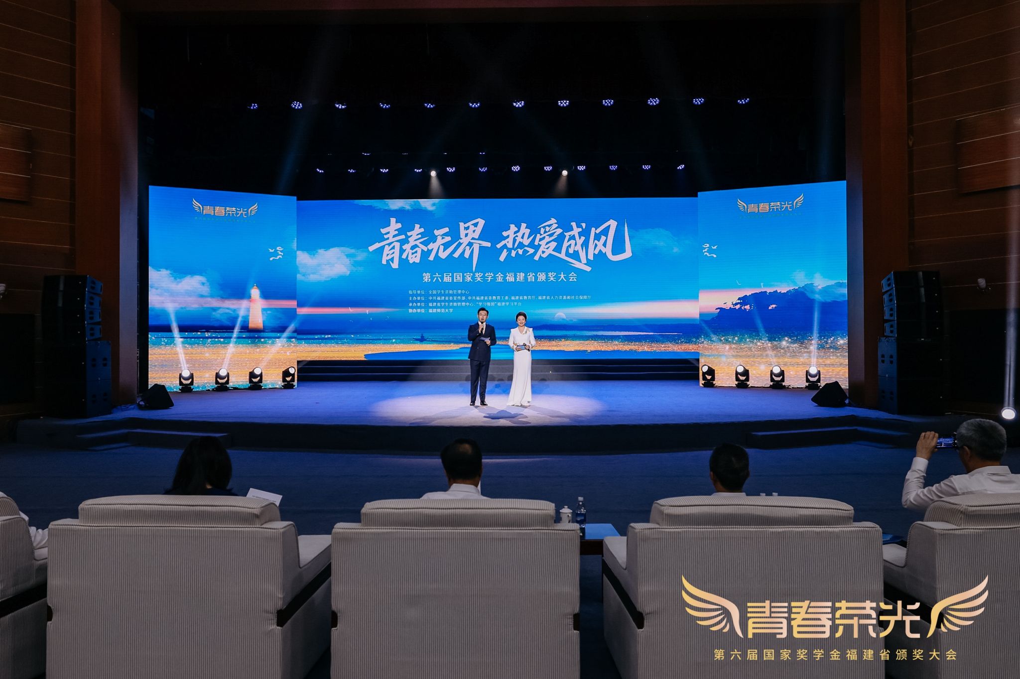 本届颁奖大会以“青春无界 热爱成风”为主题,通过“追风”“乘风”“御风”三大篇章,为来自省内高校、中职学校的2024年国家奖学金、国家励志奖学金获奖学生代表颁奖。我校党委副书记/副校长蔡金佩应邀出席,学生资助管理中心黄婷婷带队参加本次颁奖大会,2021级软件工程技术专业白伟锋作为国家奖学金获奖学生代表上台领奖。