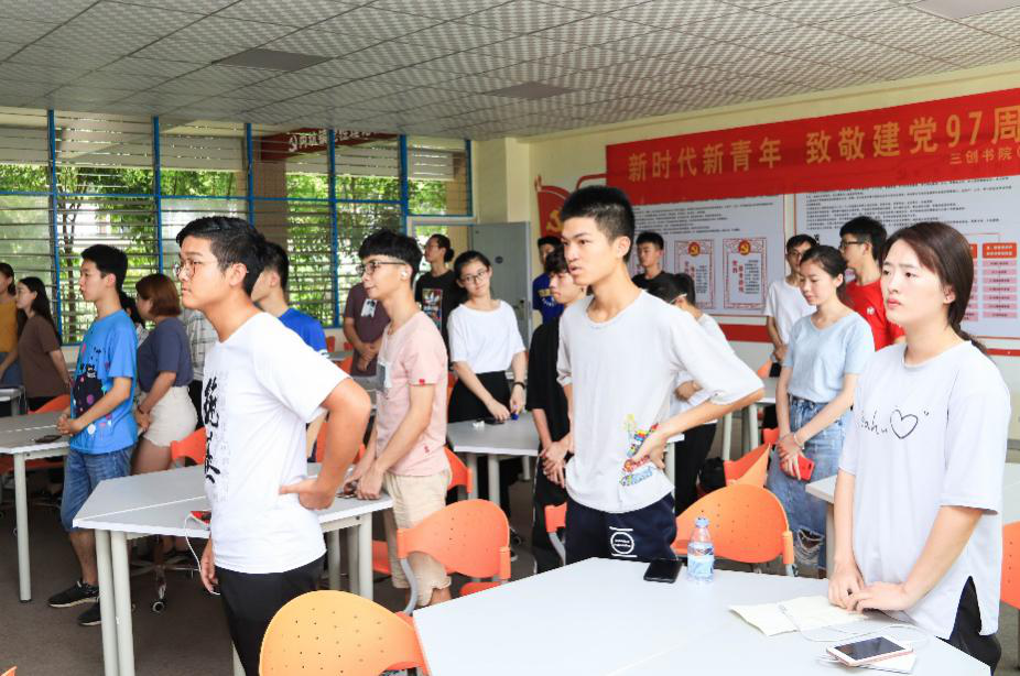 为庆祝中国共产党建党97周年,不忘初心、牢记使命,2018年7月4日三创书院在西教学楼361教室举办“新时代,新青年,致敬建党97周年”短视频挑战赛。此次活动评委分别是信息系党支部书记王园园老师,信息系团总支书记苏新萍老师,自律会指导老师17级辅导员王艳苹老师三位三创学院任职老师。这次活动举办旨在引导广大青年用自己的行动,怀揣爱党热情,为我们的党献上一份珍贵的生日礼物。此次活动的举办,代表着青年新时代的开启,是我们青年一辈为祖国发光发热的序章,作为青年一代的我们身上承继着,党和国家对我们的希望和嘱托,我们理应肩负重担,一往无前。