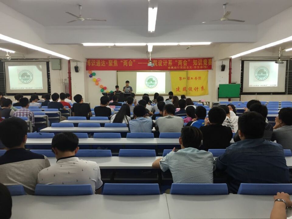 为进一步学习“两会精神”,践行社会主义核心价值观。4 月 28日晚7时,建筑系“博识通达·聚焦两会”主题知识竞赛在教学楼238教室拉开了决赛的帷幕。参加本次的比赛的评委嘉宾有学工处处长杨津平、信息系党总支书记黄镇红老师、学工处叶静老师、车辆系辅导员黄胤聪老师、商学院辅导员蔡丽勤老师、建筑系团总支书记黄荣峰老师、辅导员王秋玲老师、建筑系14级学生及全体学生会成员。